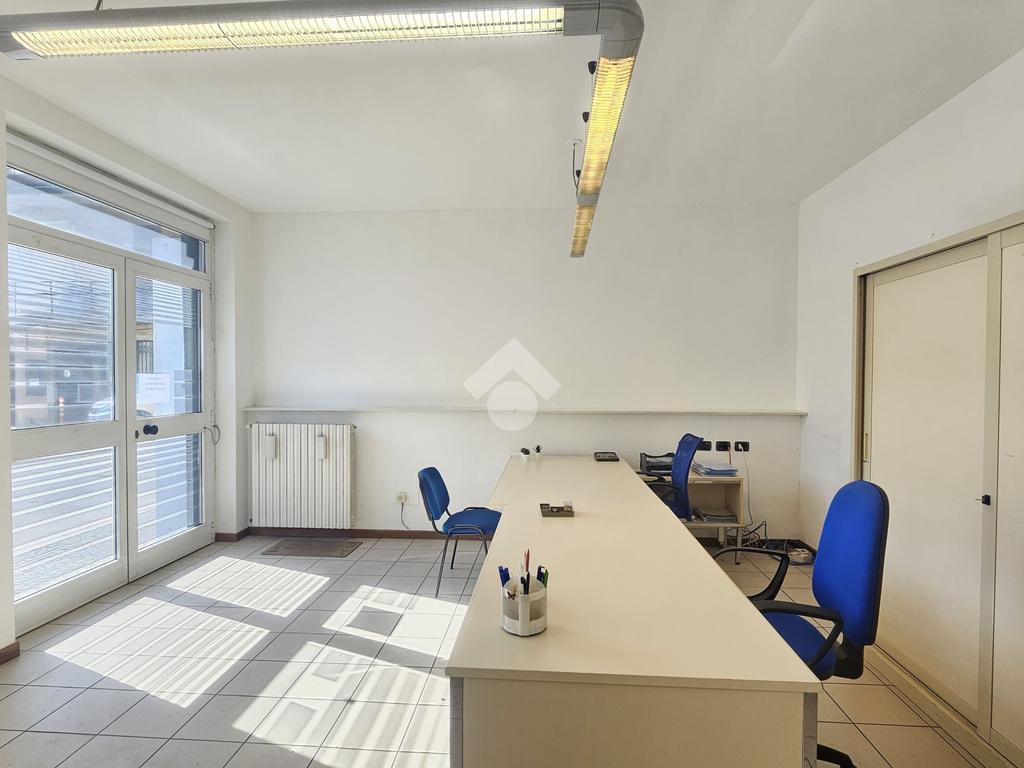 Il locale principale, che in passato ospitava fino a tre postazioni con scrivanie, è ben illuminato e dispone di una finestra per una ventilazione garantendo un ambiente di lavoro confortevole, e offre una grande visibilità grazie alla vetrina affacciata direttamente sulla strada principale. Questa caratteristica rende lo spazio ideale per attività commerciali che desiderano esporre pubblicità e attirare l’attenzione dei passanti. Inoltre, è presente una comoda porta sul retro, facilitando l'accesso per il personale o per il carico e scarico merci.