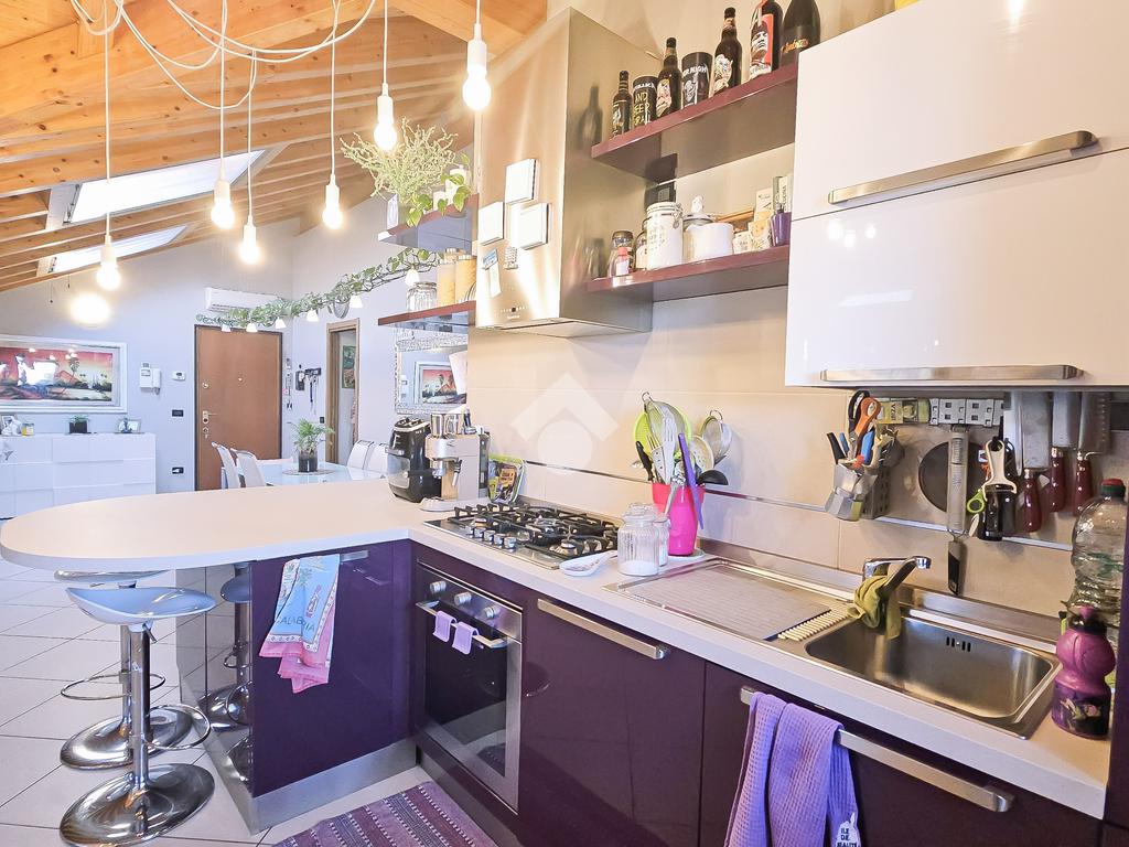 La zona giorno è un invitante open space, con una cucina moderna a vista sul soggiorno, arricchita da un delizioso terrazzino perfetto per momenti di relax e convivialità all'aperto.
