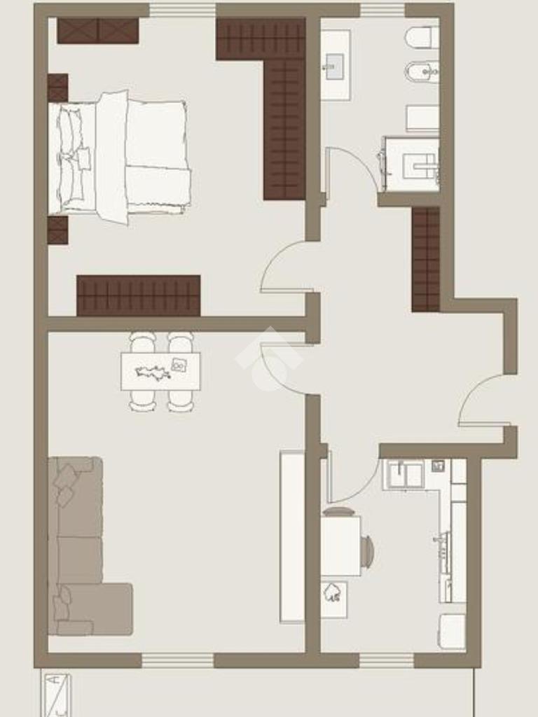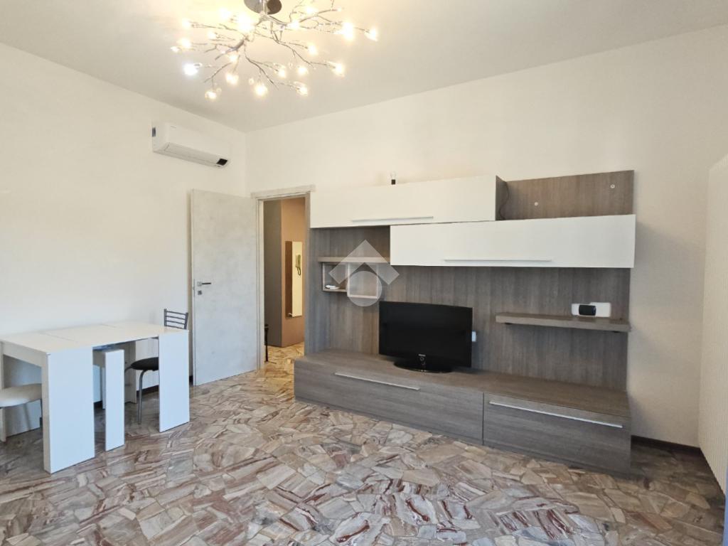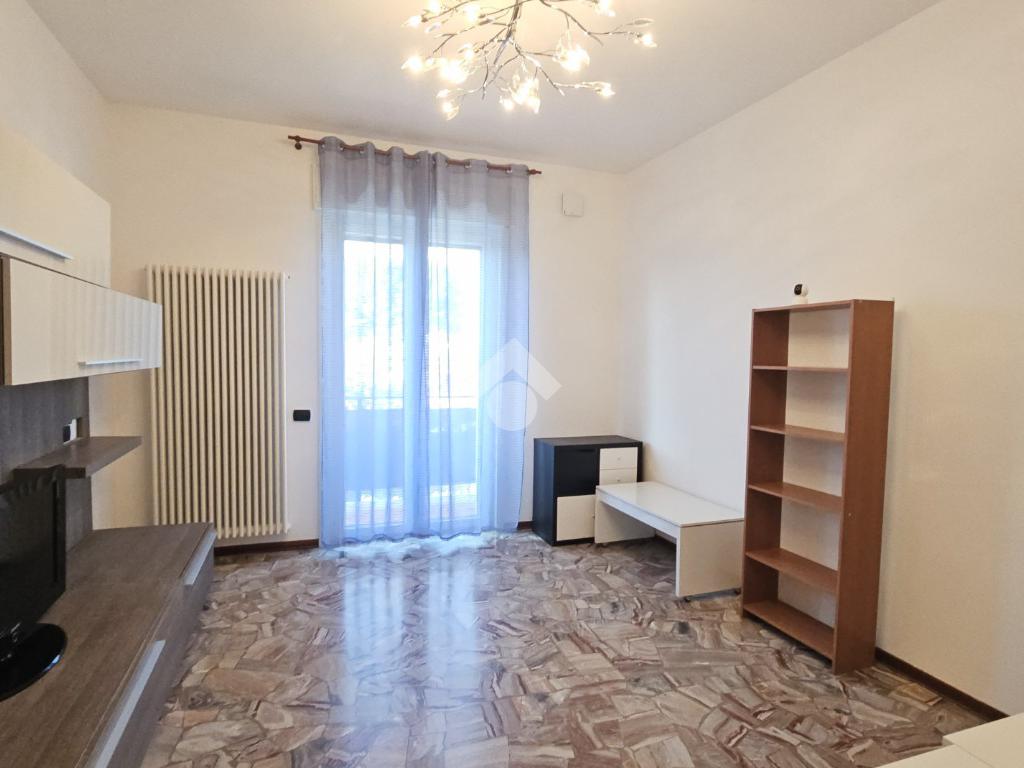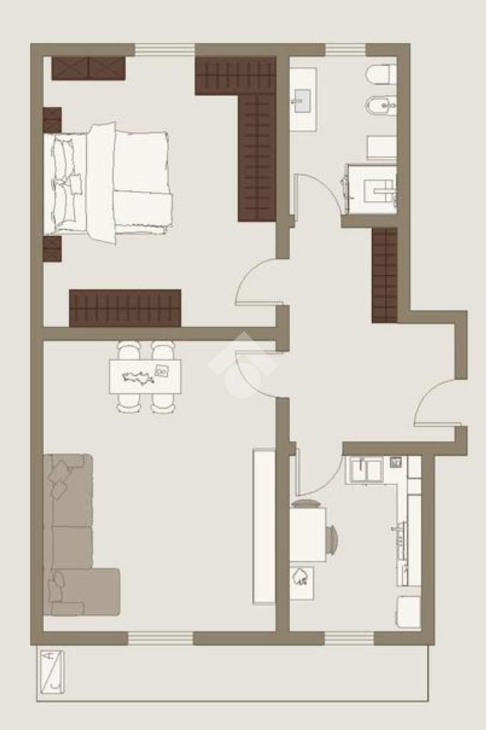 L'appartamento è composto da un grande soggiorno e una cucina separata, entrambi collegati esternamente da un balcone che offre un piacevole spazio all'aperto.