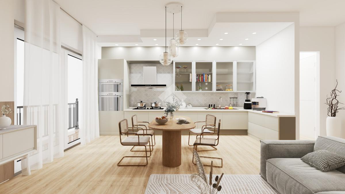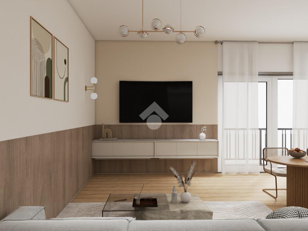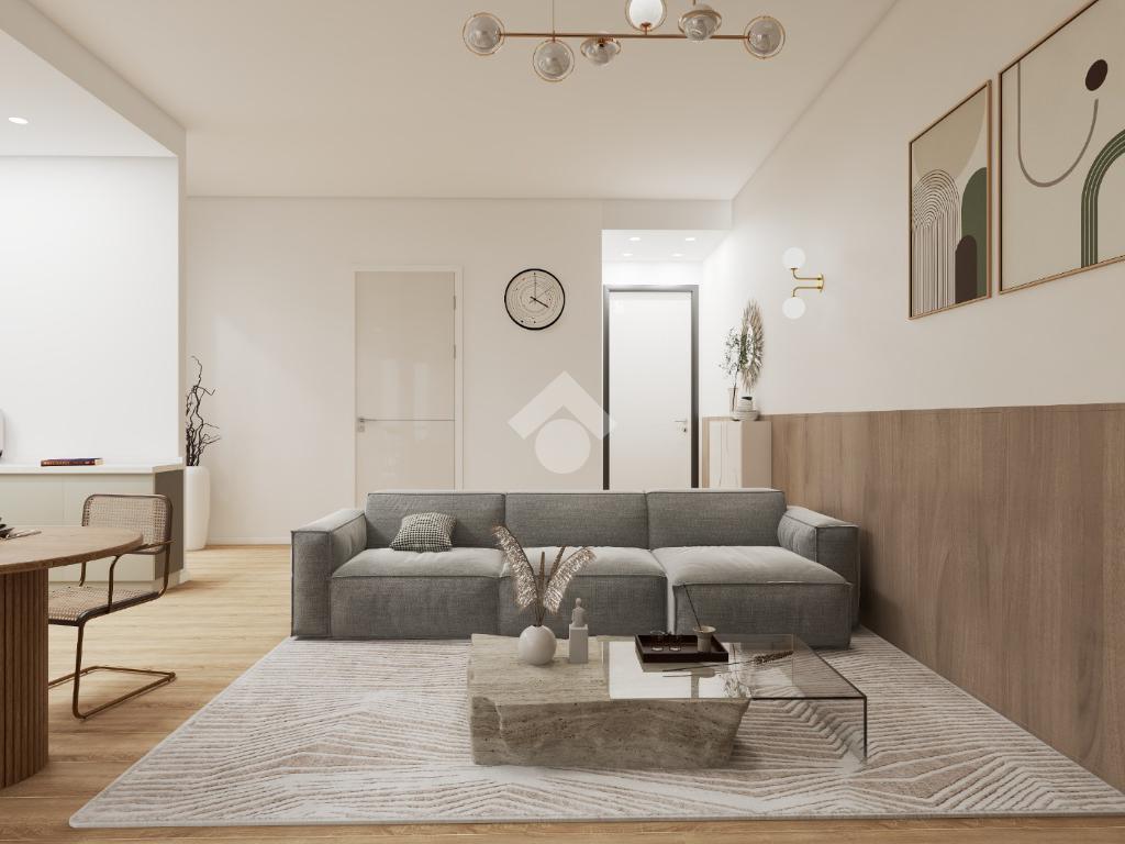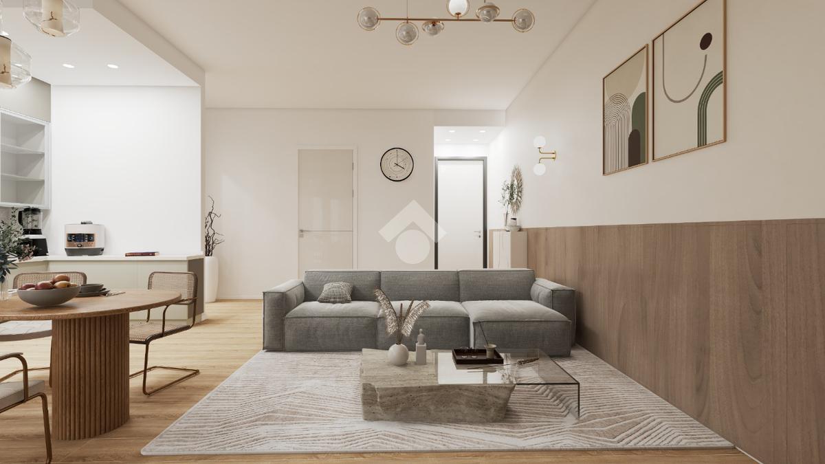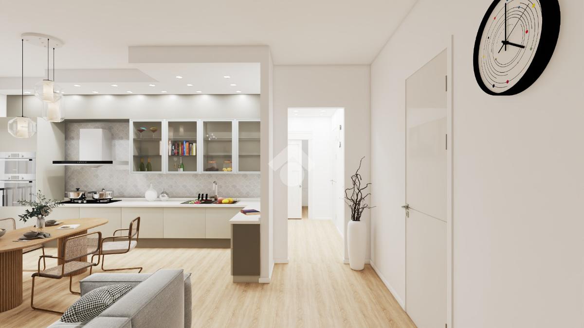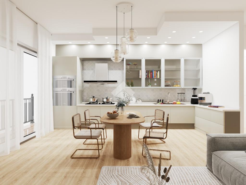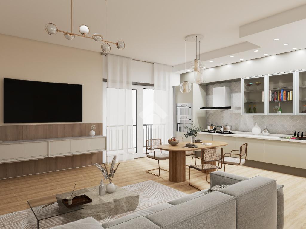 Entrando nel soggiorno, si è accolti da uno spazio ampio e arioso, dove la cucina a vista si integra armoniosamente, creando un ambiente perfetto per la convivialità e il relax. Dalla zona giorno si accede a uno dei due balconi, ideale per godersi momenti all'aperto.