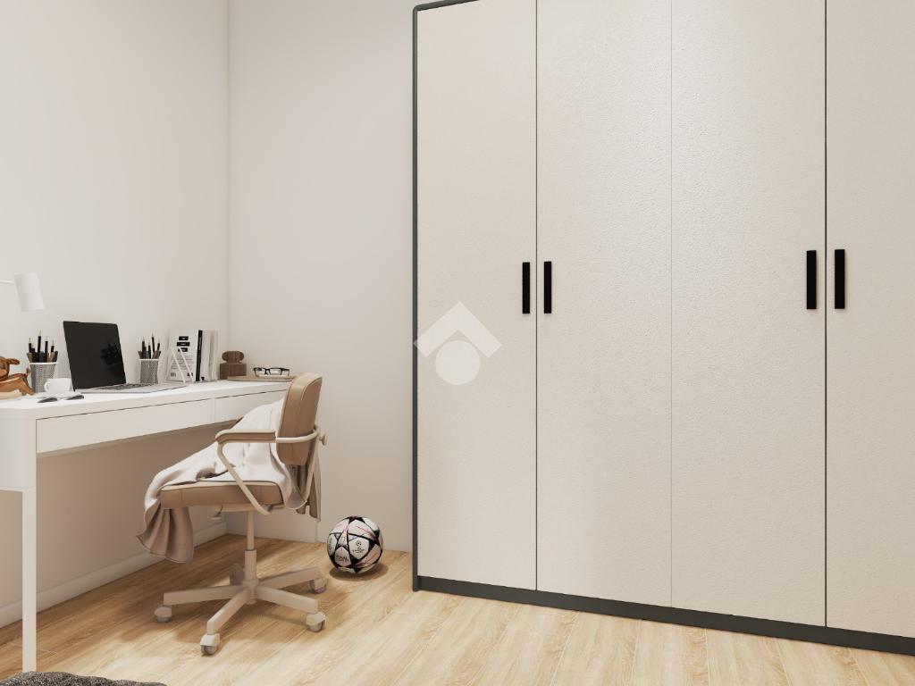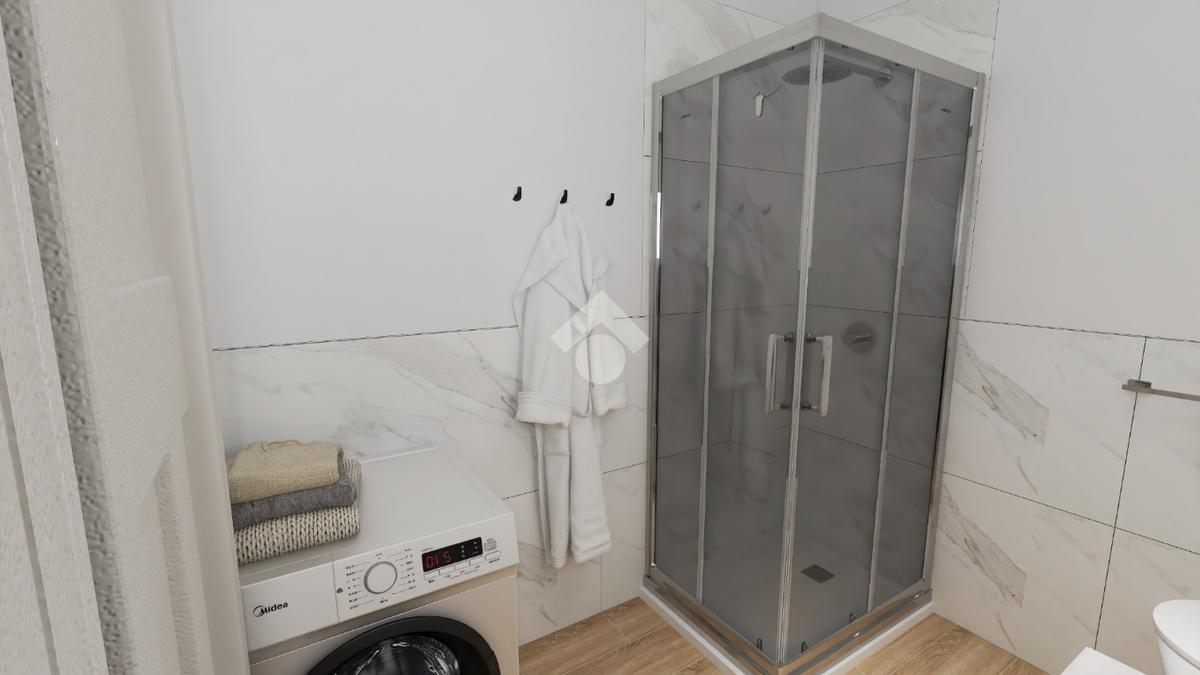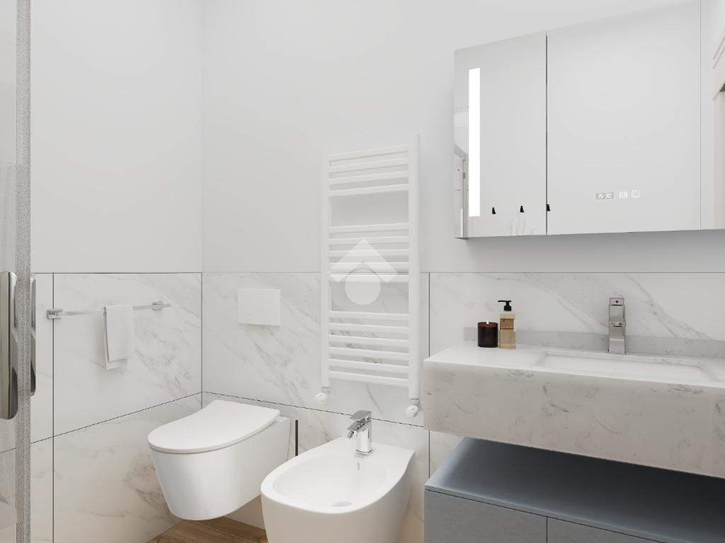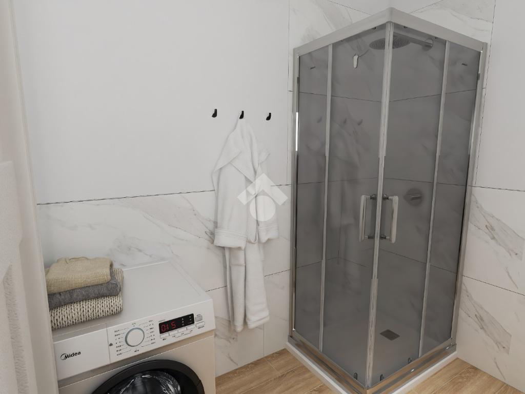 Completano l'appartamento dettagli di qualità come pavimenti in gres porcellanato effetto legno che conferiscono calore e accoglienza, porte interne bianche pantografate con finitura laccata, e serramenti esterni in PVC con avvolgibili motorizzati. Gli impianti tecnologici sono all'avanguardia, con predisposizione per l'aria condizionata, riscaldamento a termosifoni e un sistema di scaldabagno elettrico con collegamento Wi-Fi, assicurando un elevato livello di efficienza energetica e comfort abitativo.