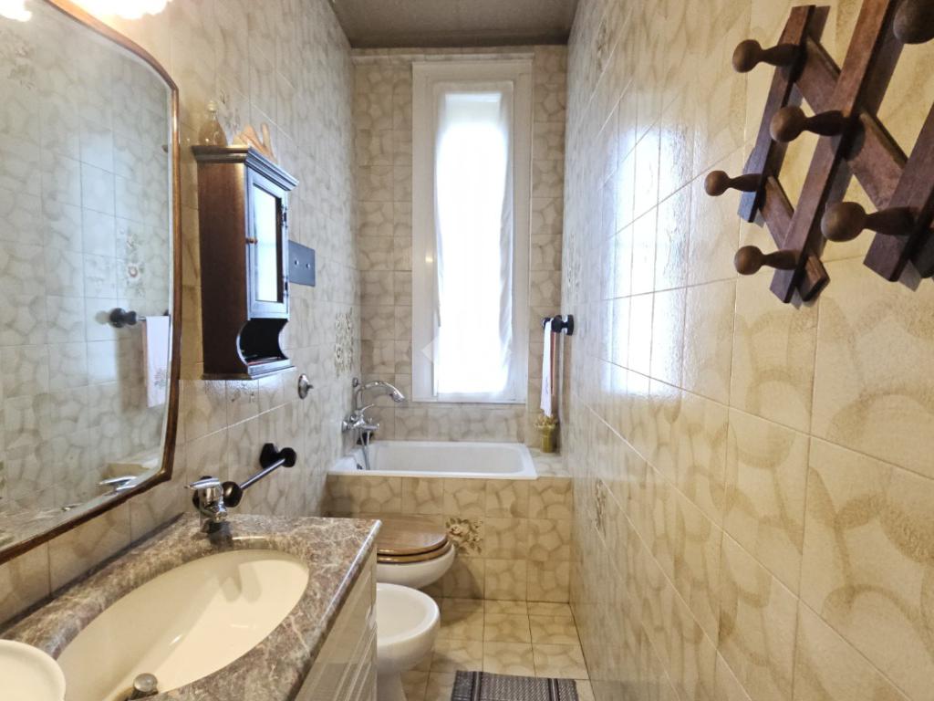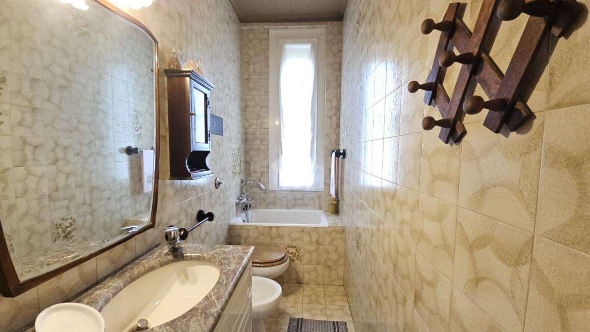 Il bagno, pur non essendo rinnovato, è funzionale e dispone di una vasca. La camera da letto matrimoniale è ampia, con dimensioni generose tipiche delle costruzioni dell'epoca.