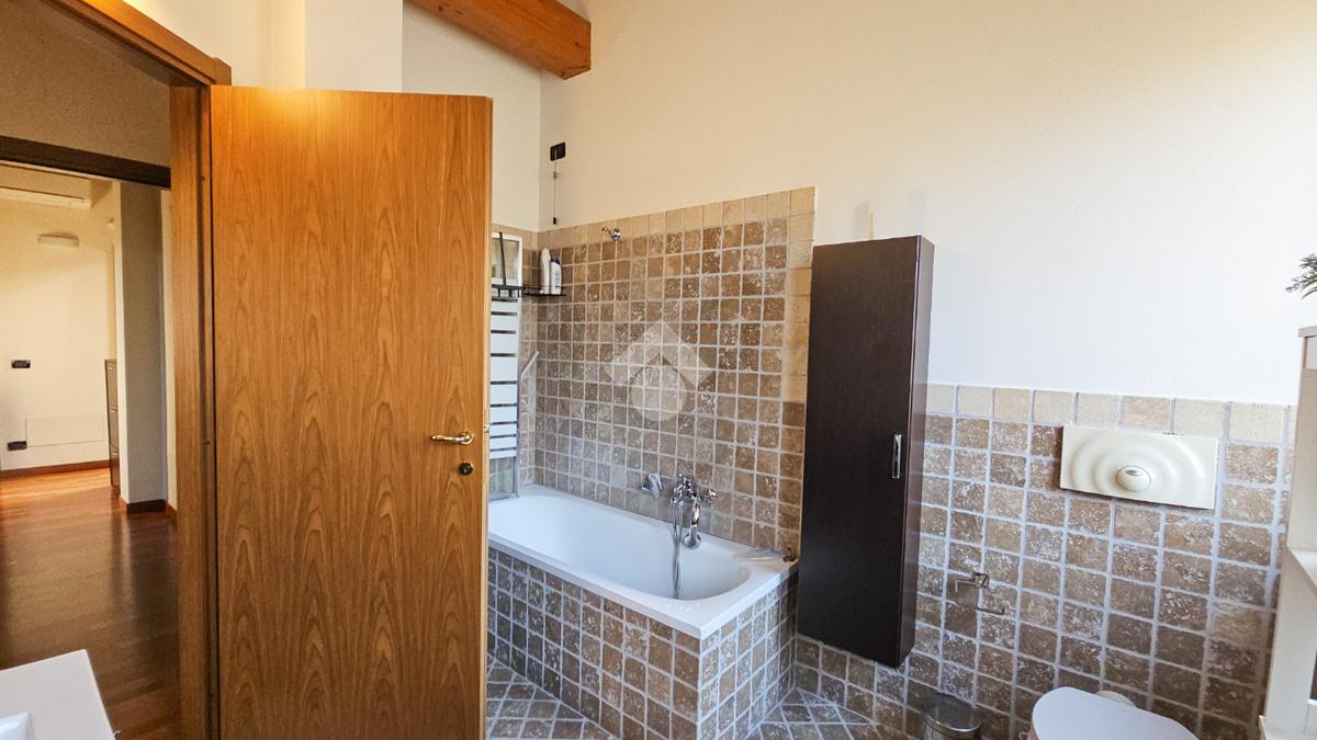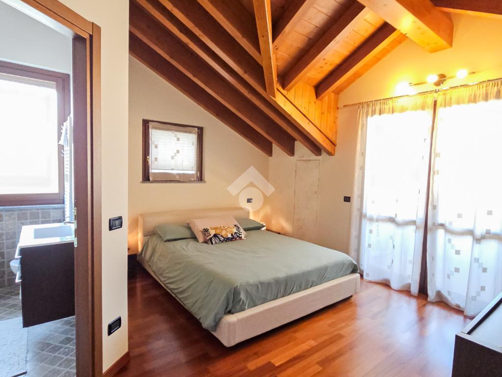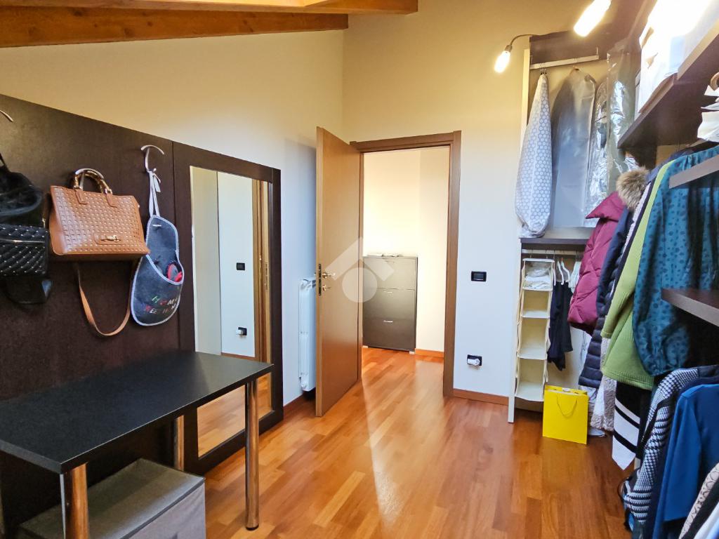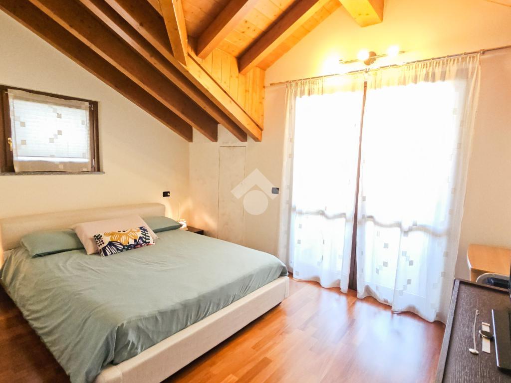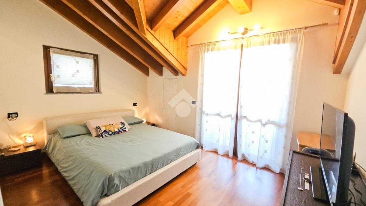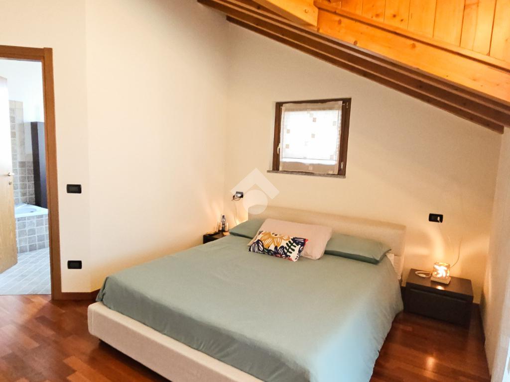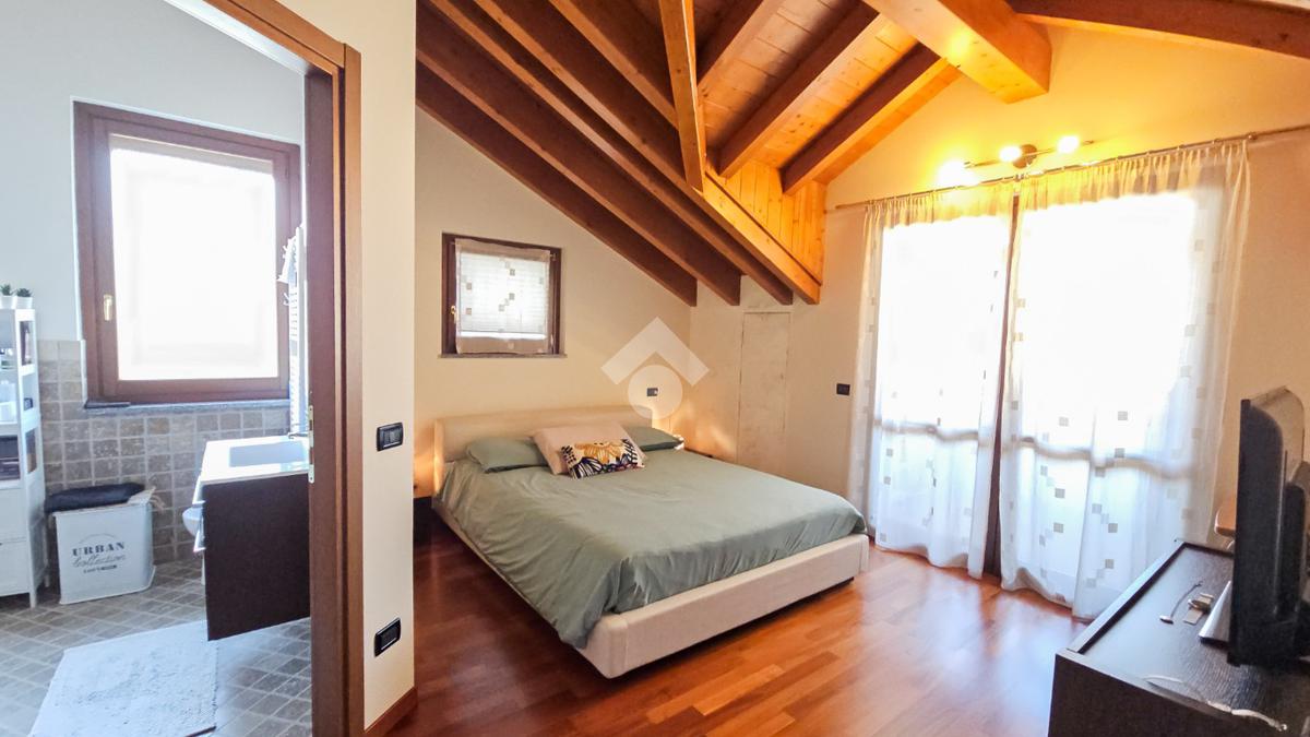Le travi a vista conferiscono all'ambiente un'atmosfera calda e accogliente in tutto l’immobile che è inoltre dotato di zanzariere su tutte le finestre e di un impianto di condizionatore combinazione perfetta per un totale comfort estivo.