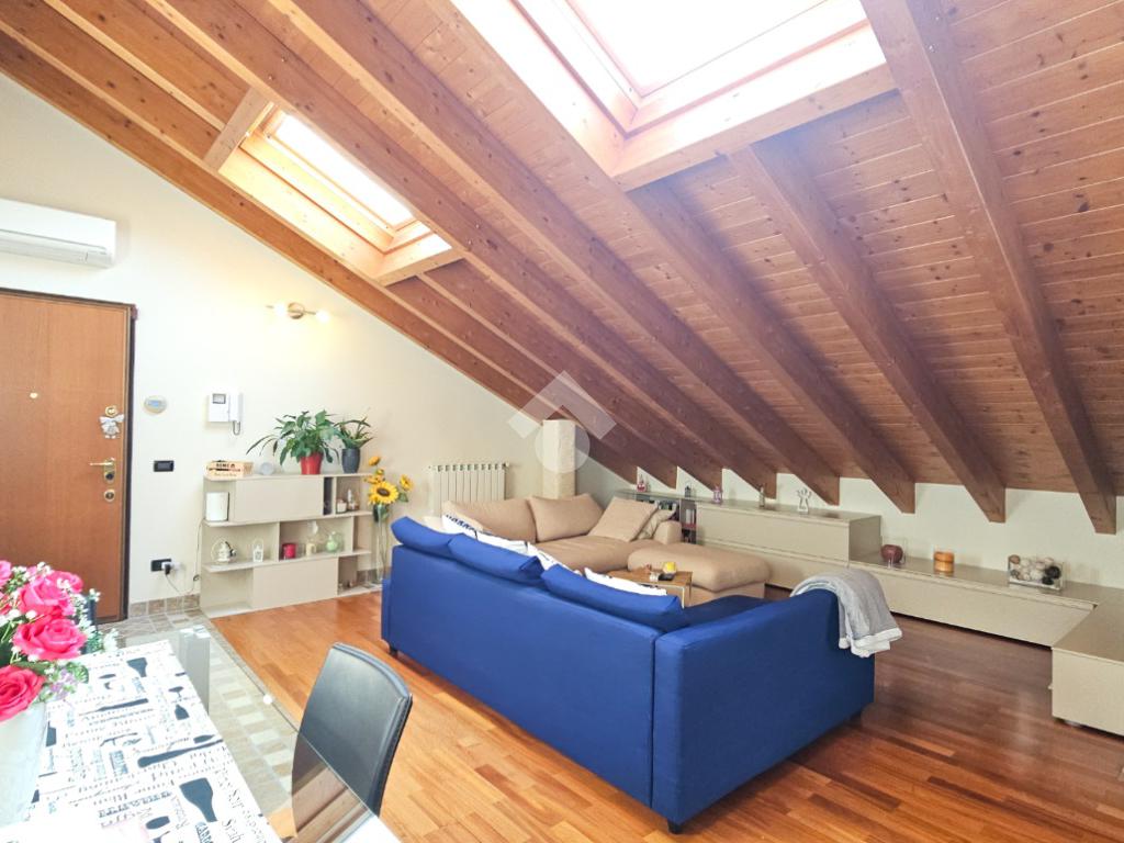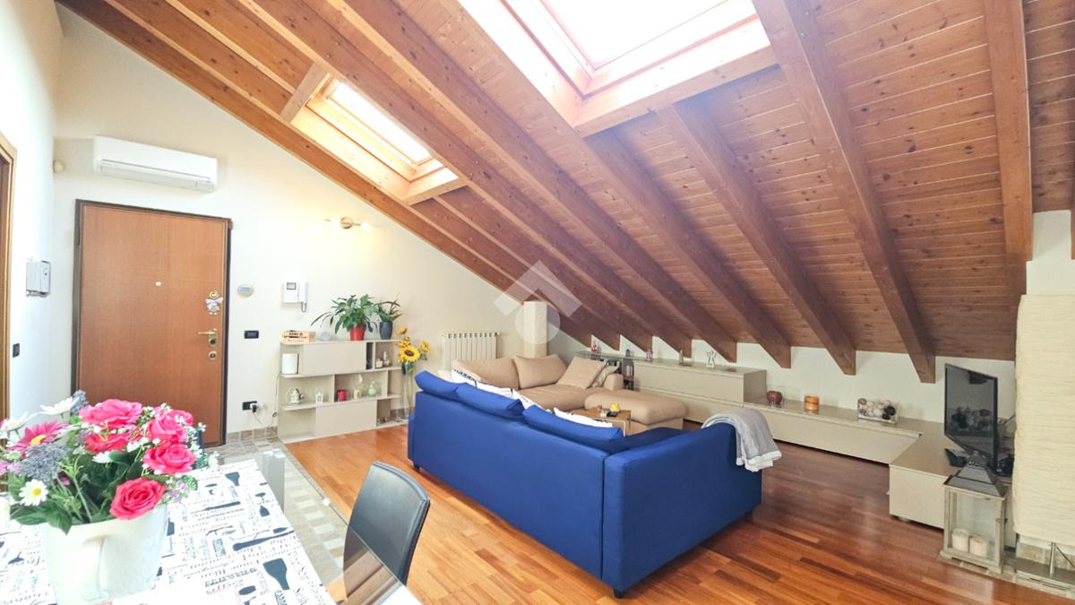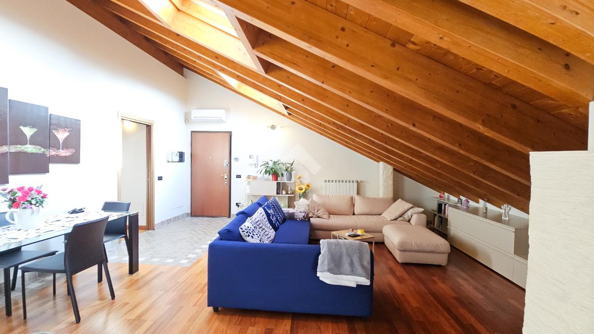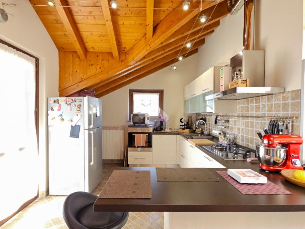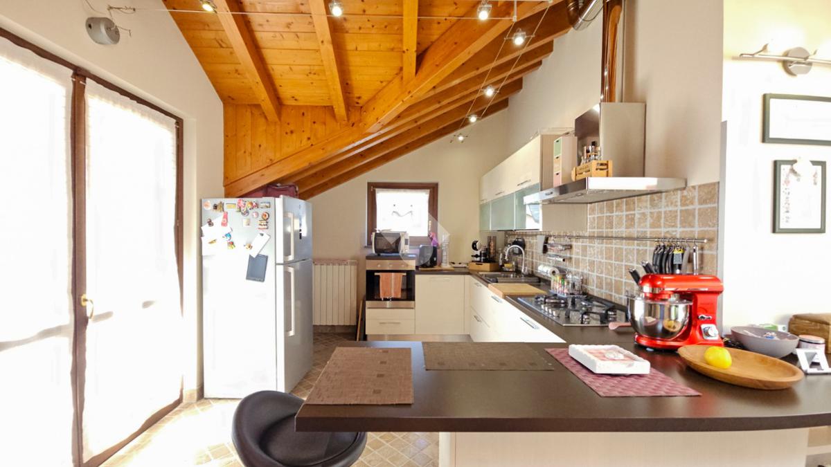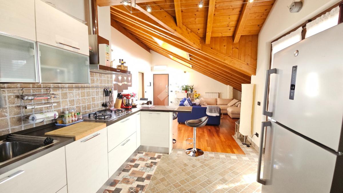 L’immobile è reso molto luminoso grazie ai velux e dispone di una zona giorno in open space, con cucina a vista sul soggiorno e accesso a un piccolo terrazzo, ideale per rilassarsi all'aperto.