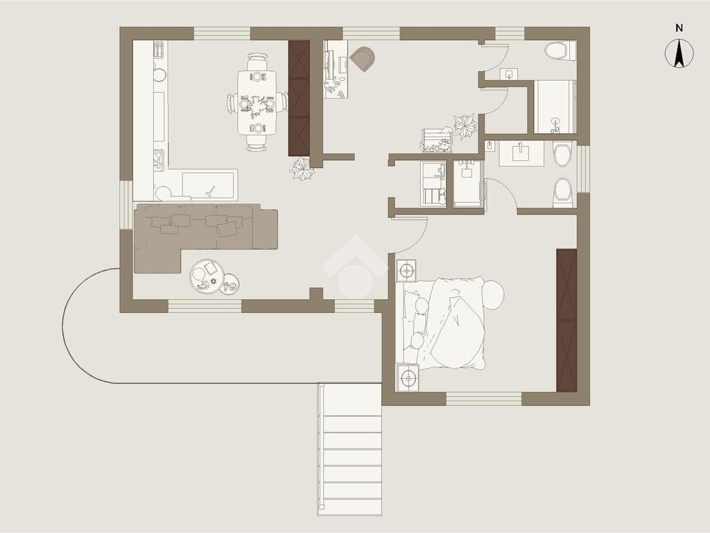 Questa casa indipendente, sviluppata su un unico piano, rappresenta la scelta ideale per chi desidera un ambiente accogliente e funzionale.